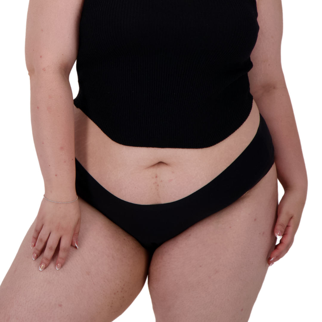 Ropa interior menstrual absorbente estilo bikini con corte invisible y absorción moderada. Con tecnología antifugas en los bordes, que te dará la máxima seguridad. Su tela extraligera estilo seda y terminación sin costuras lo hace ideal para usar con cualquier tipo de ropa. Es el más elástico, por lo que no aprieta y se adapta al cuerpo.