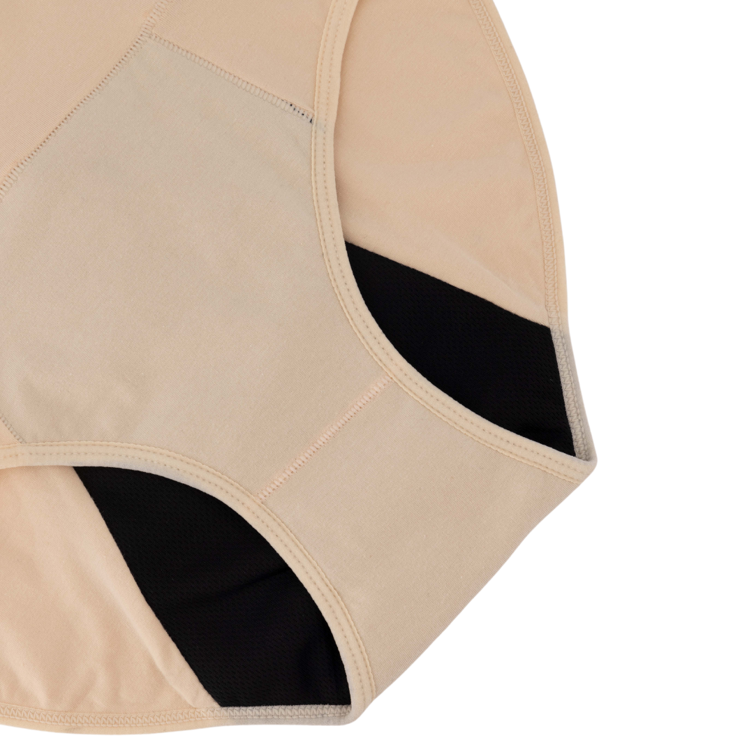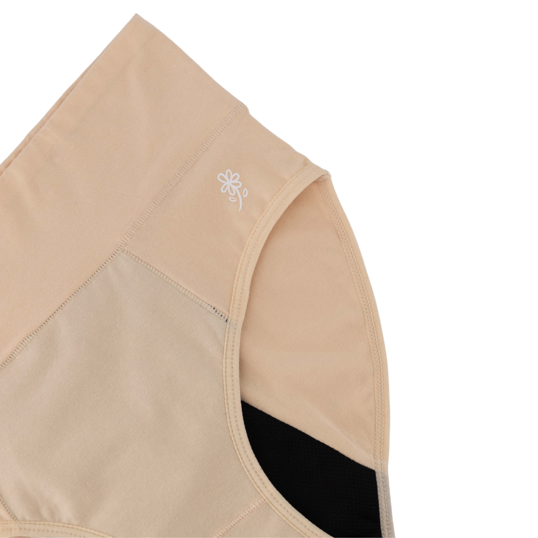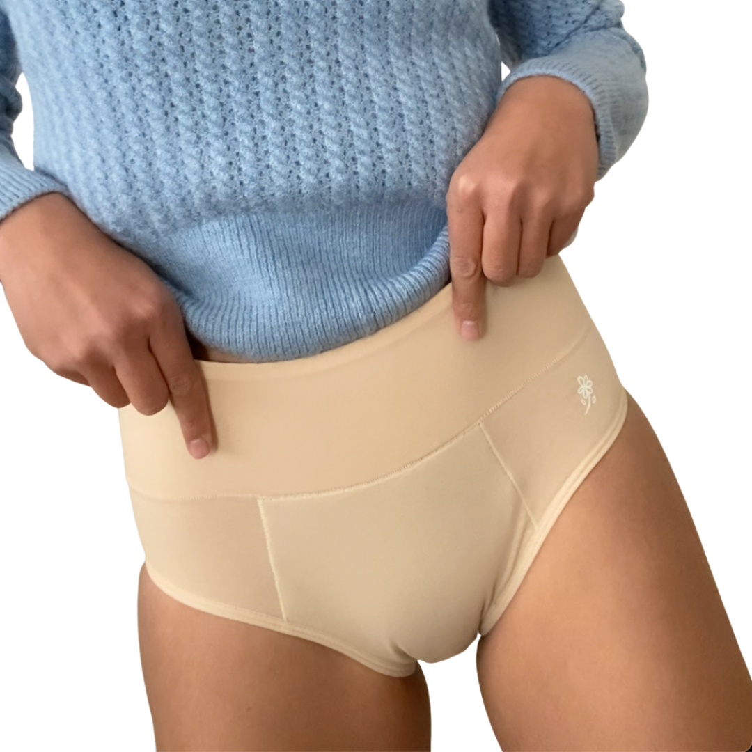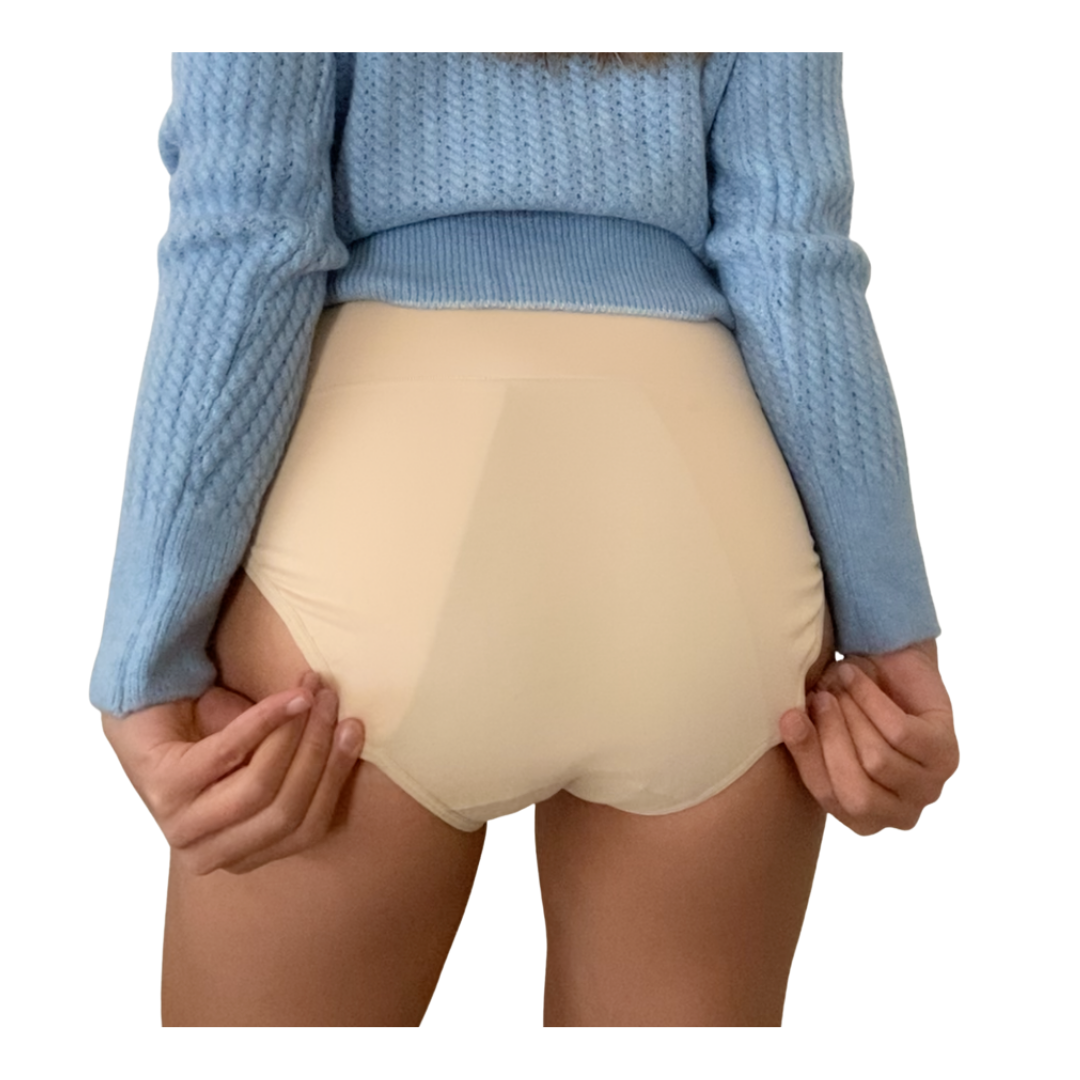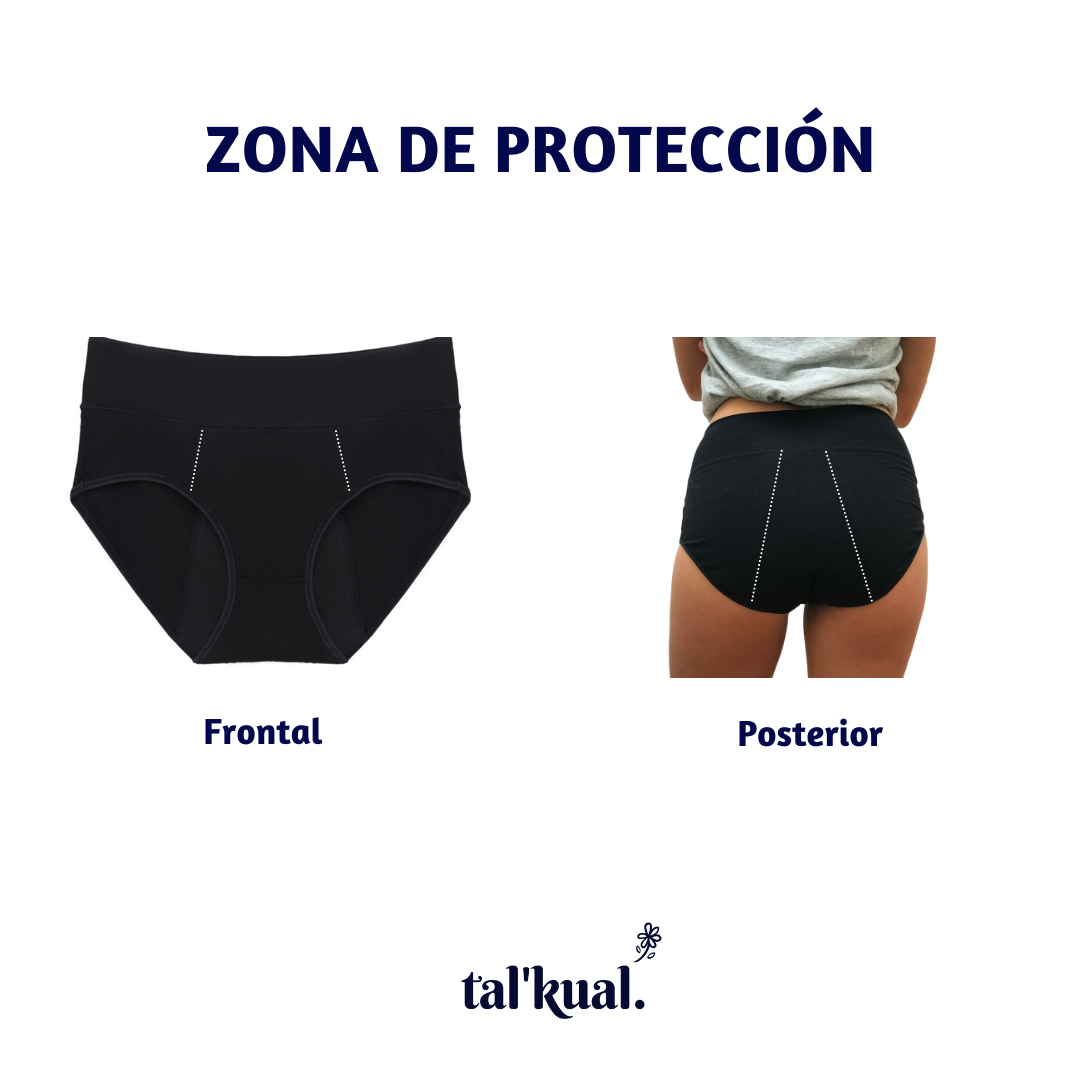 El calzón menstrual que te apapacha con absorción abundante (4 tampones), de tela de algodón, sin resorte y con soporte en tu pancita. Capas internas de absorción y antifugas.