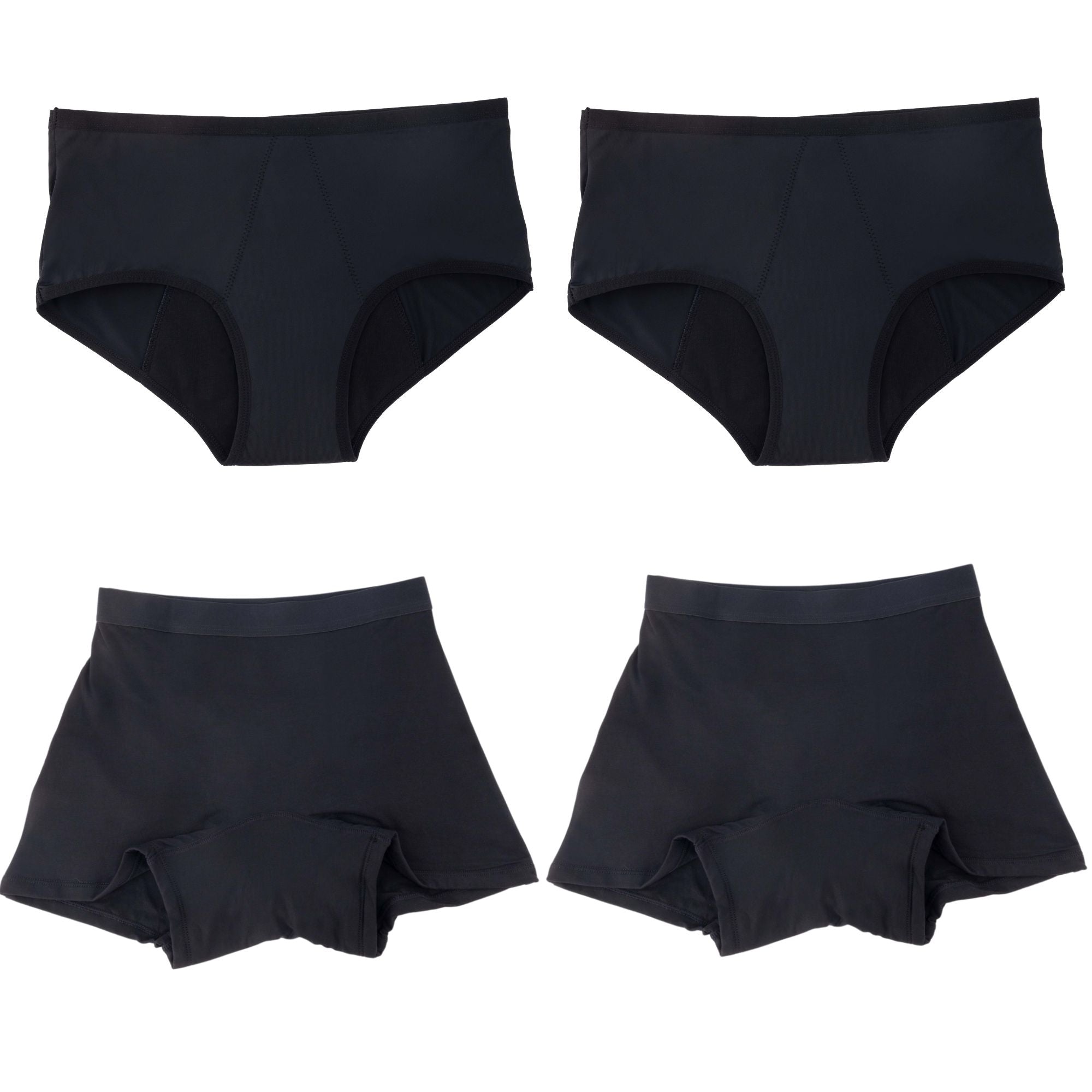 4Pack edición limitada a precio especial de ropa interior menstrual para día y noche: 2 Bóxer nocturno de bambú con 5 tampones de absorción + 2 Bóxer 2.0 con 5 tampones de absorción. Perfectos para flujo abundante, para una rutina para consentirte y máxima protección.